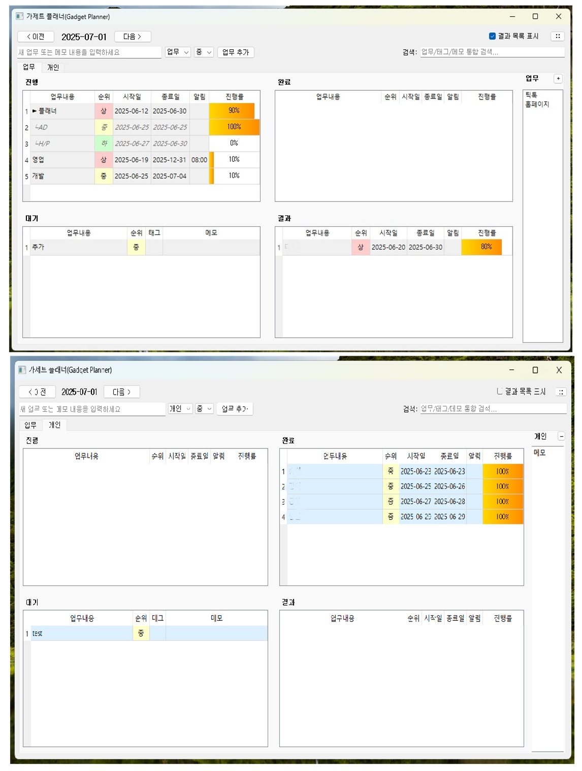 1. 사용자의 '업무'와 '개인'적으로 해야 할 일을 정리해서 보여줍니다.